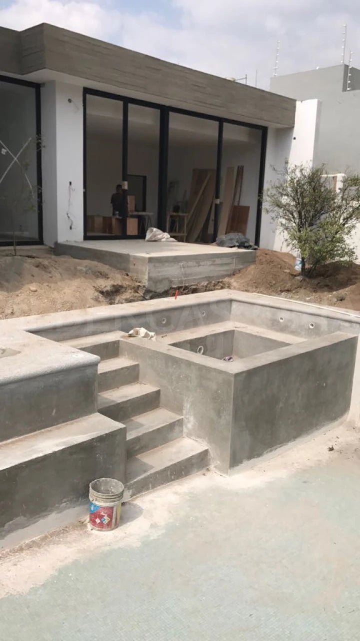 Le défi, construire une piscine dans un espace avec un accès limité aux équipements et machines.